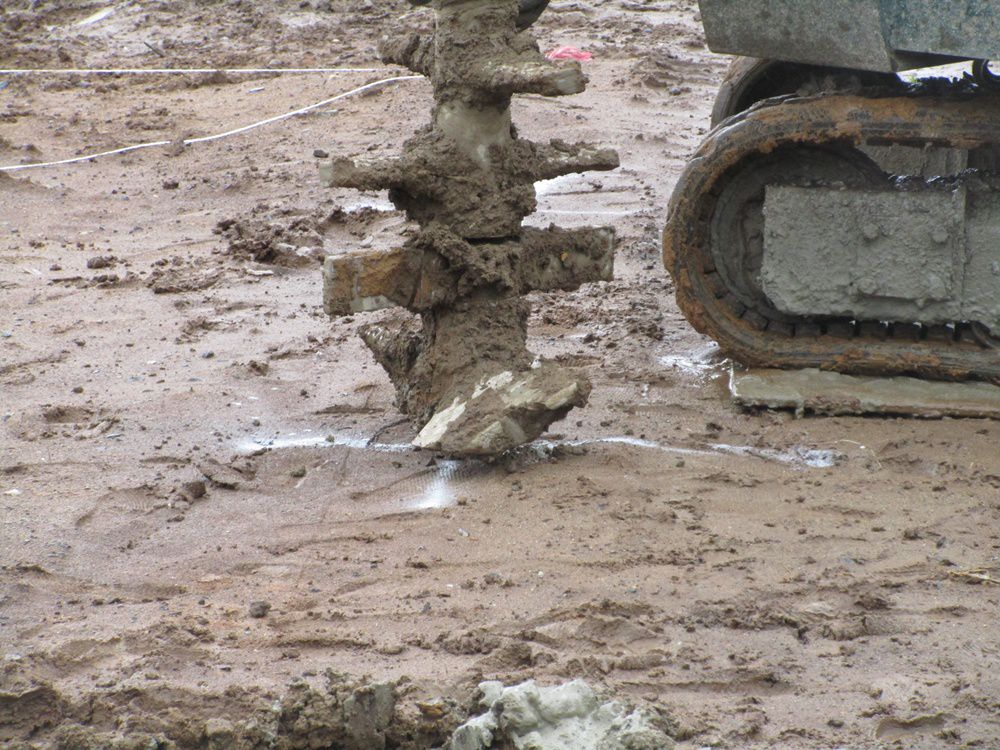 3mから 5mの 深さで 柱状の 改良体で 地盤を支えます。