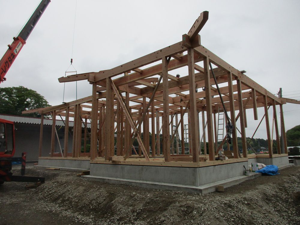 前に地盤改良工事をした現場 いよいよ上棟です。 現代和風の住宅です。 仕上がりが楽しみですね。